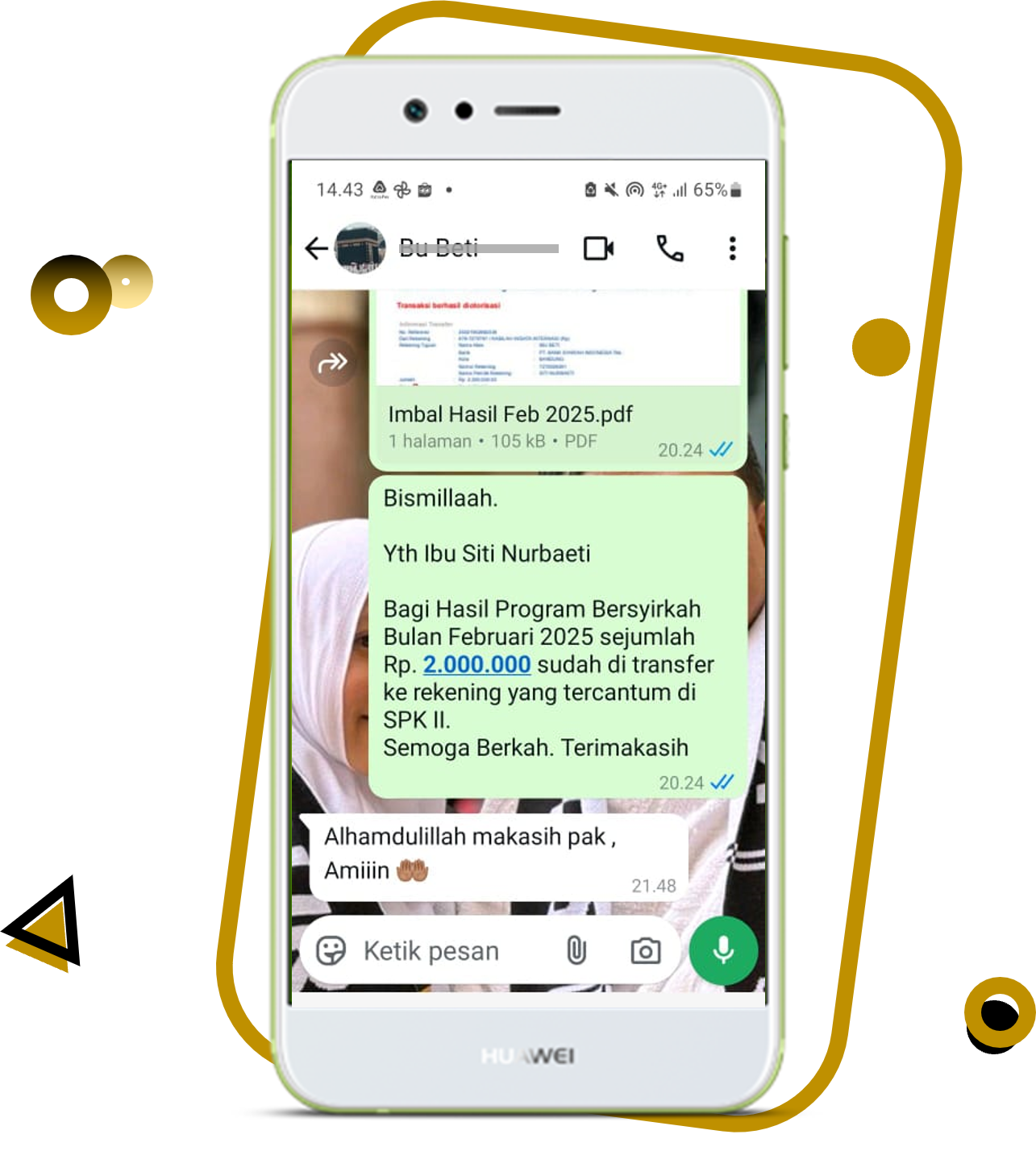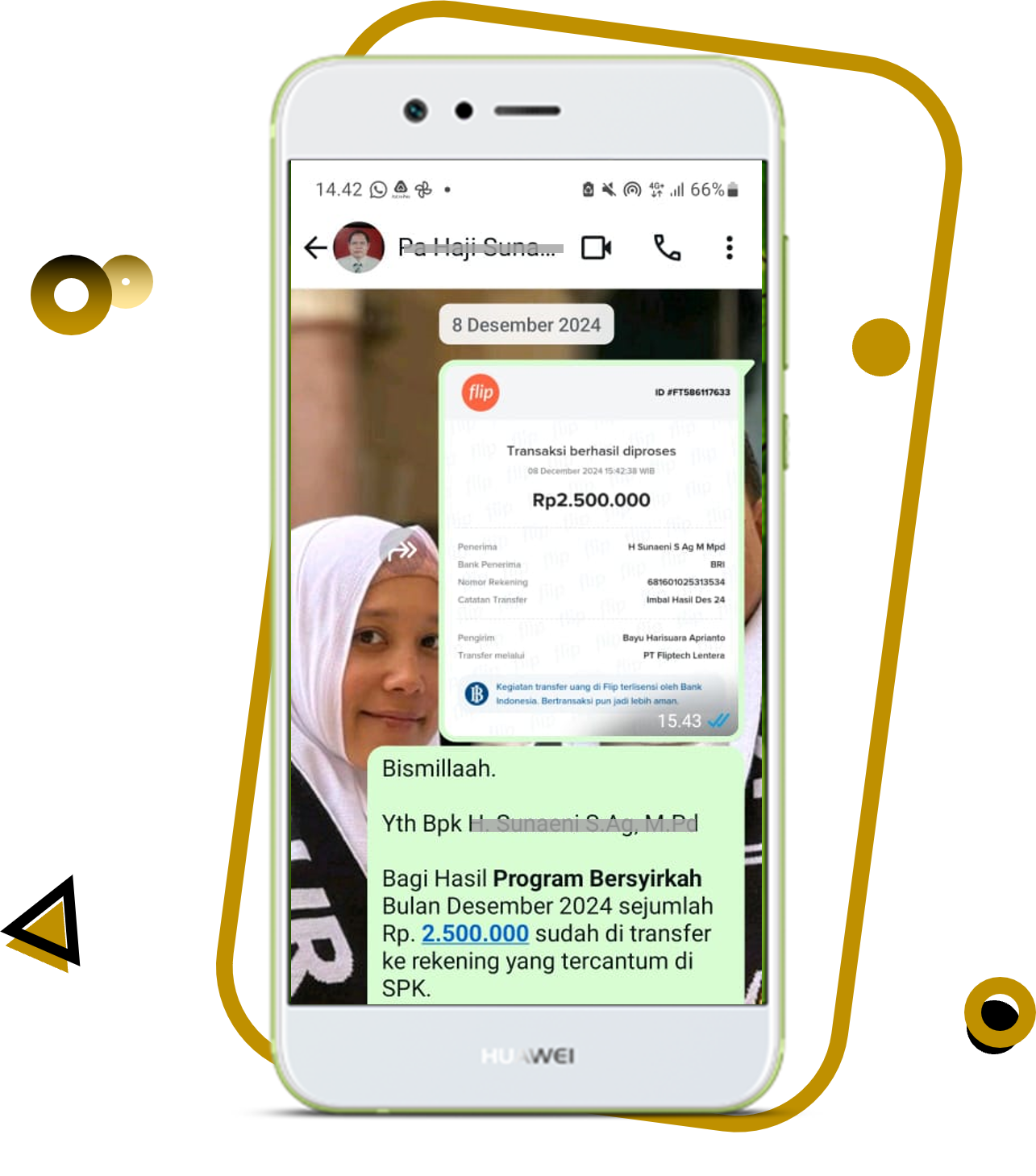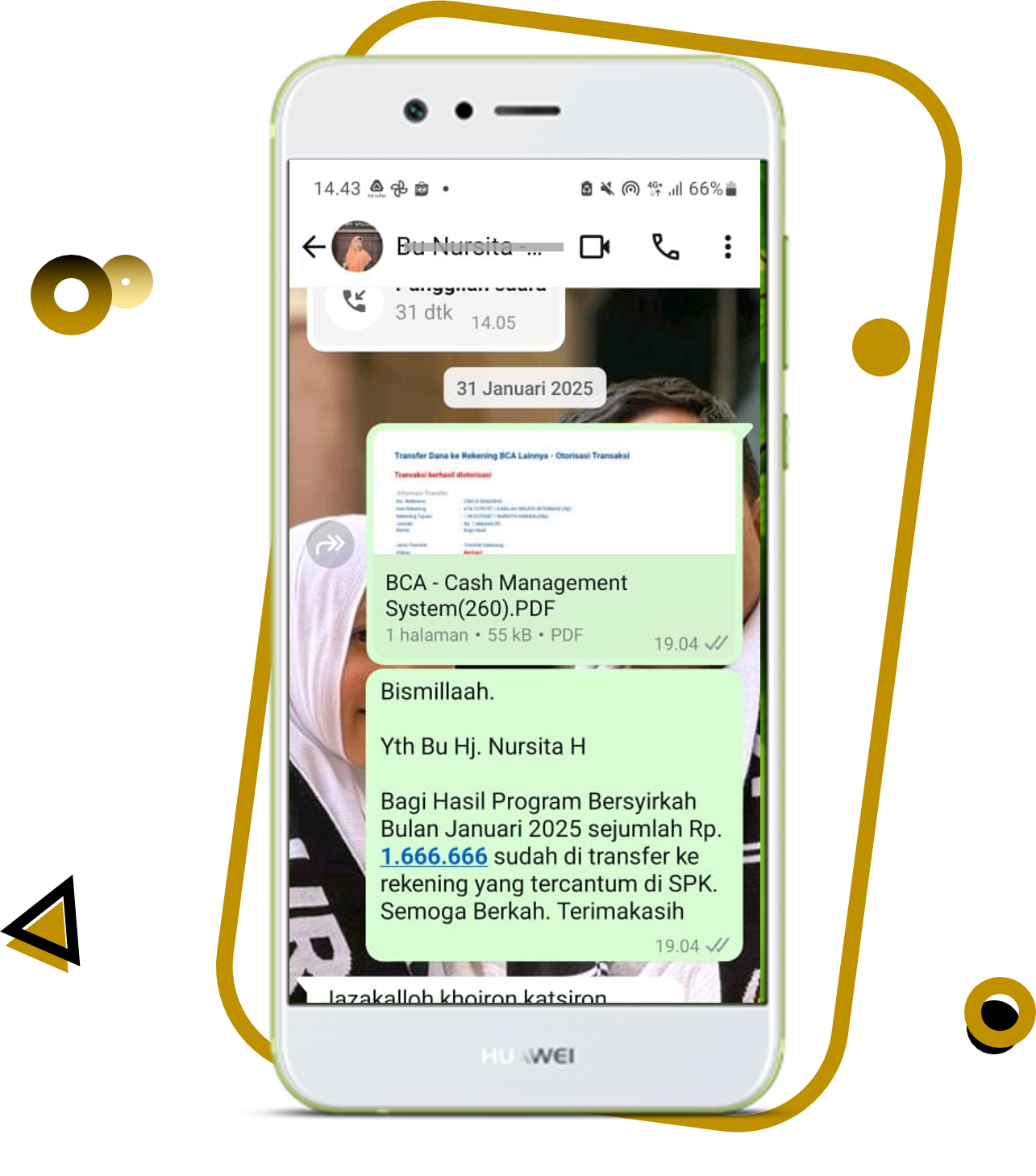 Berpotensi mendapatkan Nisbah atau Bagi Hasil pertahun nya sebesar 10 - 12 % atau mendapatkan Umroh GRATIS. Sedangkan kalau uang tersebut masuk di Deposito Perbankan, hanya mendapatkan kisaran 4 - 6 % per tahun.